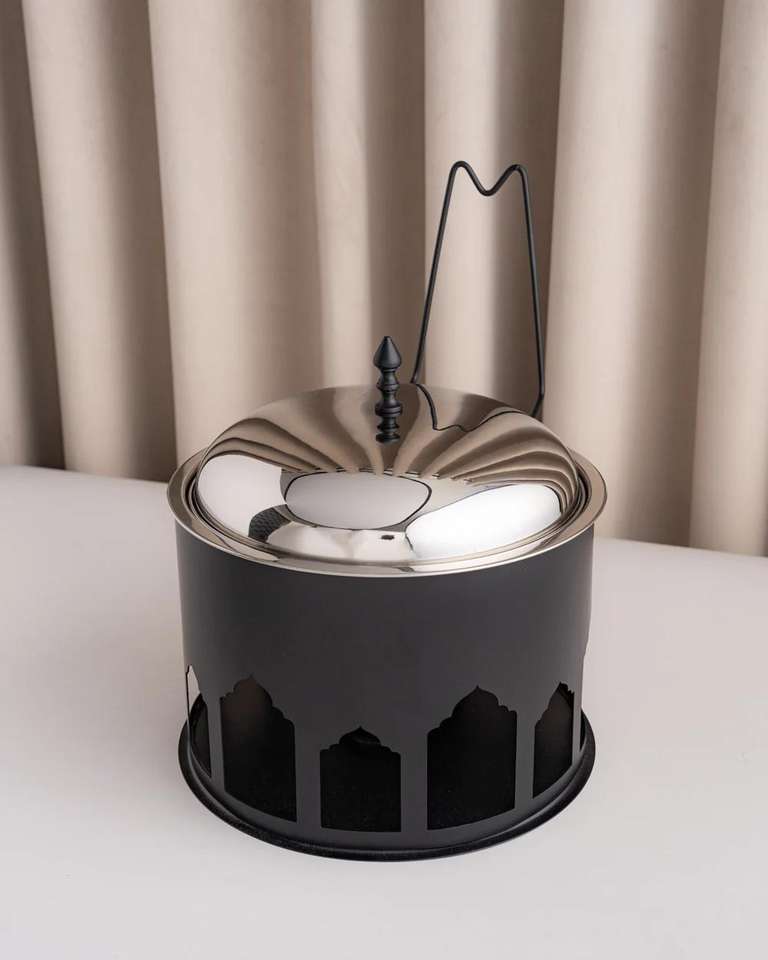 Moderne Noir Premium Arabe Design Personnalisé Décoratif Moyen-Orient Réchauffeur de Nourriture Buffet Hotpot Casseroles Dans les Prix de Gros