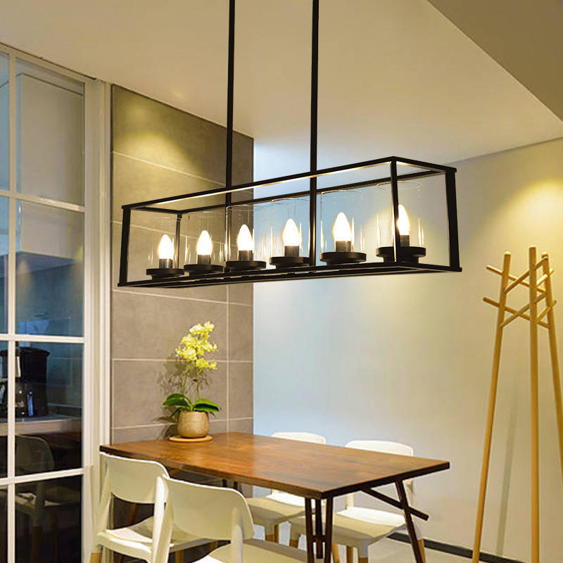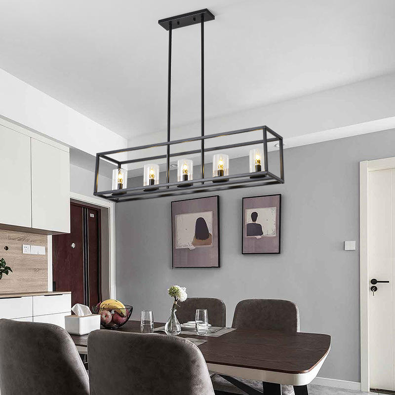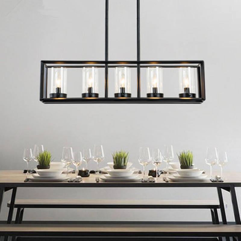 Cadre Rectangle Noir Moderne Grande Lampe Suspendue en Métal Forgé Fer Éclairage Bureau Table à Manger Lumière chandelier lustres