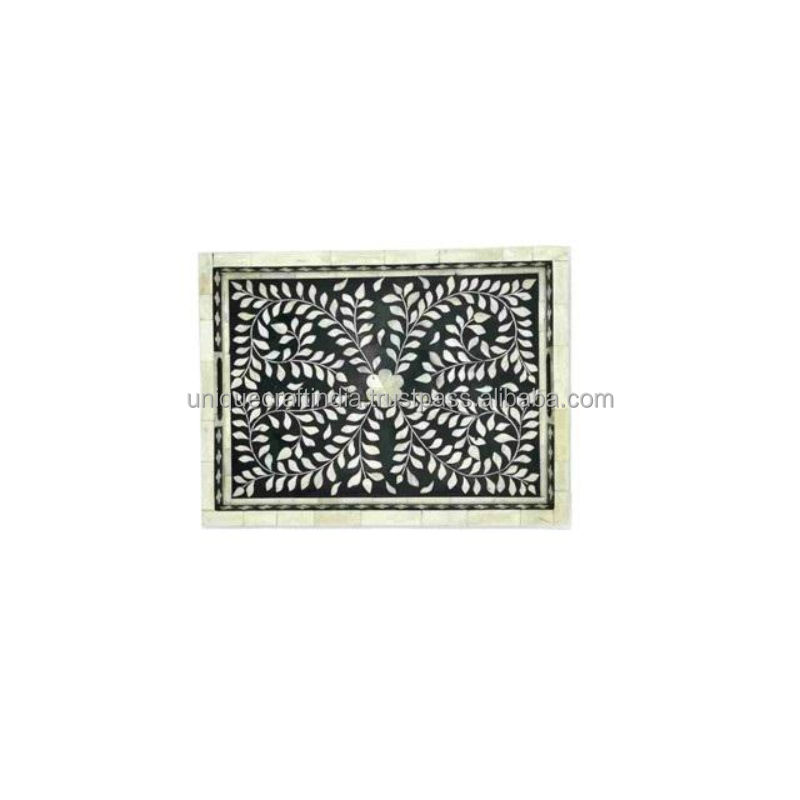Plateau en bois moderne à motif en spirale noir avec incrustations d'os et accents ivoire pour la décoration de la maison, de la cuisine, de la salle à manger et de la table basse