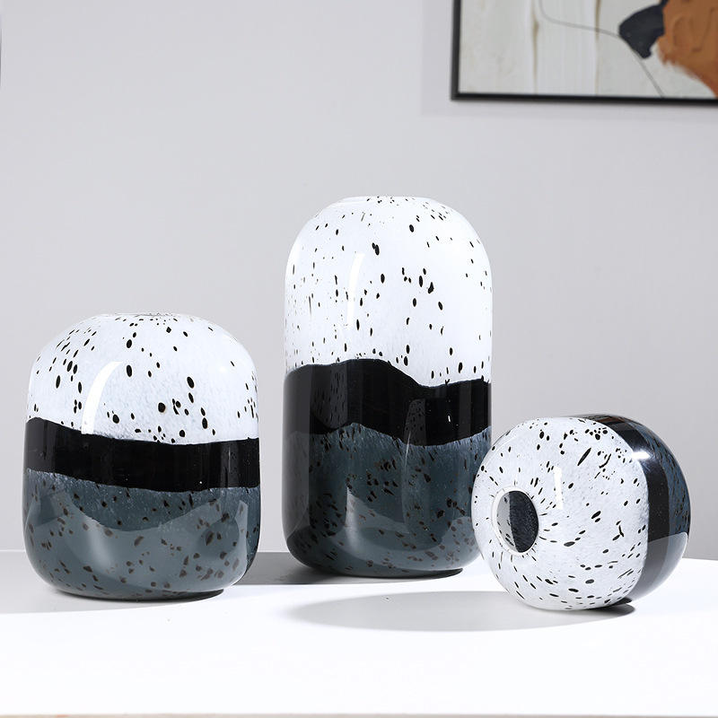Vase en verre moderne à dégradé de points noirs et blancs, design de bureau à domicile, modèle de pièce, décoration douce, vase de couleur