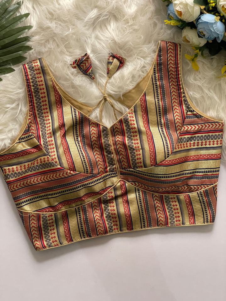 Chemisier moderne a une couleur multy blouse en soie banarasi lourd a col en forme de v froent, et le dos a motif sabyasachi