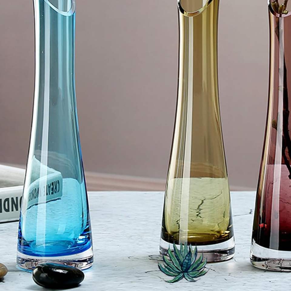 Modern Blue Blique Mouth Hand-Made Blown Art Glass Flower Vase Single Bud Wedding Table Centerpiece Factory Wholesale Decorative