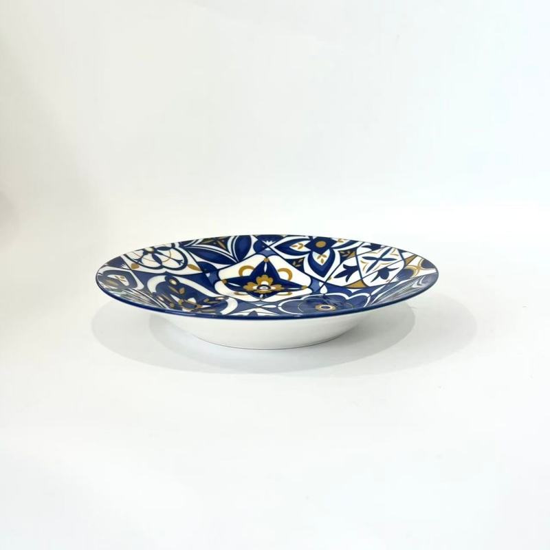 Service de vaisselle en porcelaine moderne à motif mosaïque bleu et or, vaisselle sur glaçure pour la maison/événements, dîner à domicile