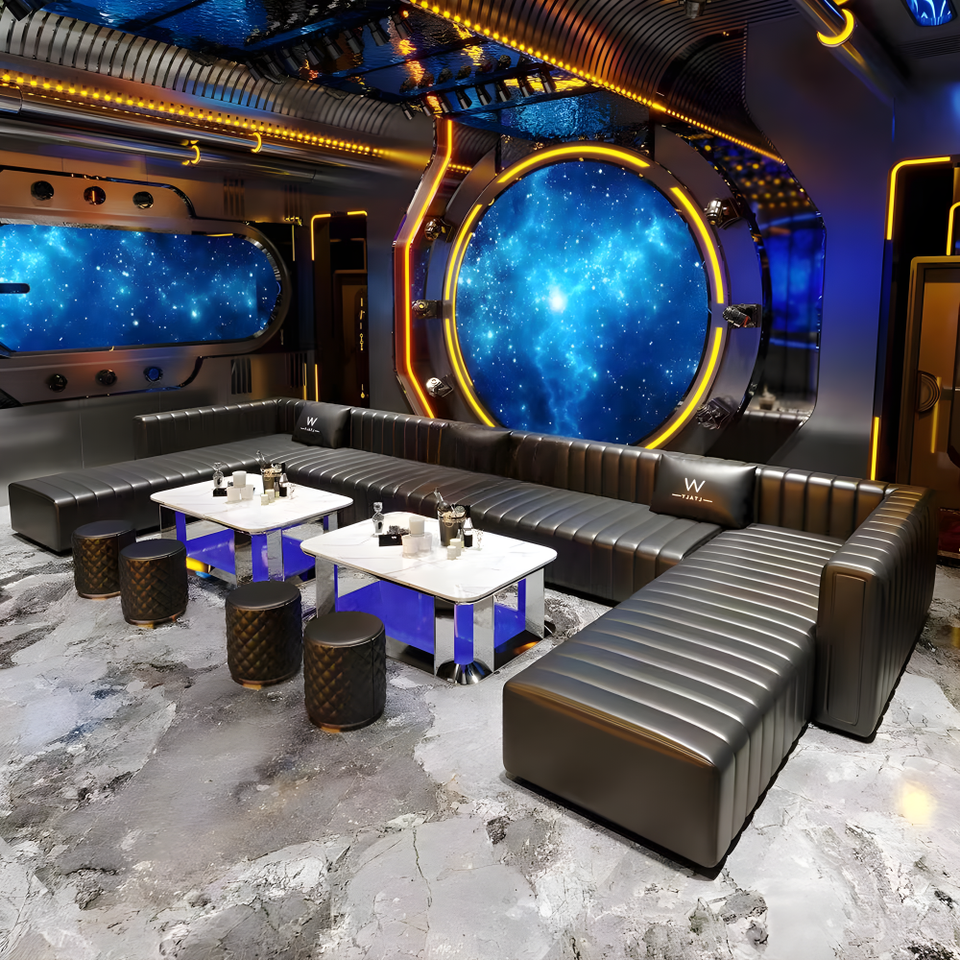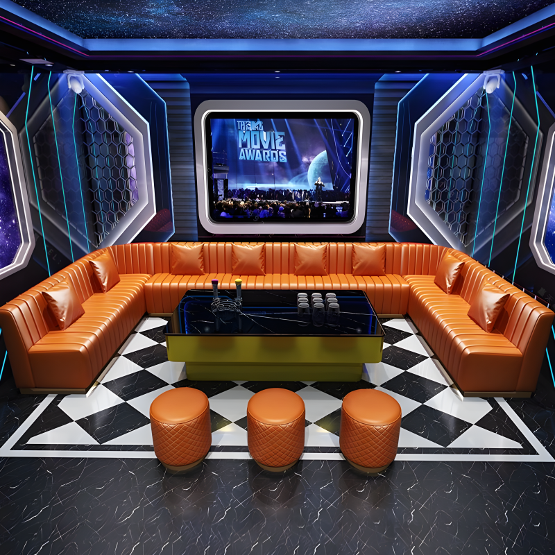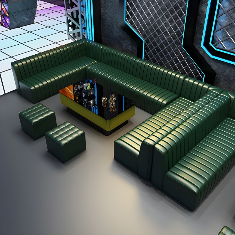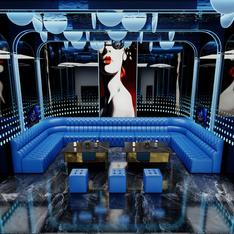 Ensemble de sièges en forme de L en cuir PU bleu moderne, banquette d'angle commerciale, canapé pour KTV, boîte de nuit, bar, salon, mobilier