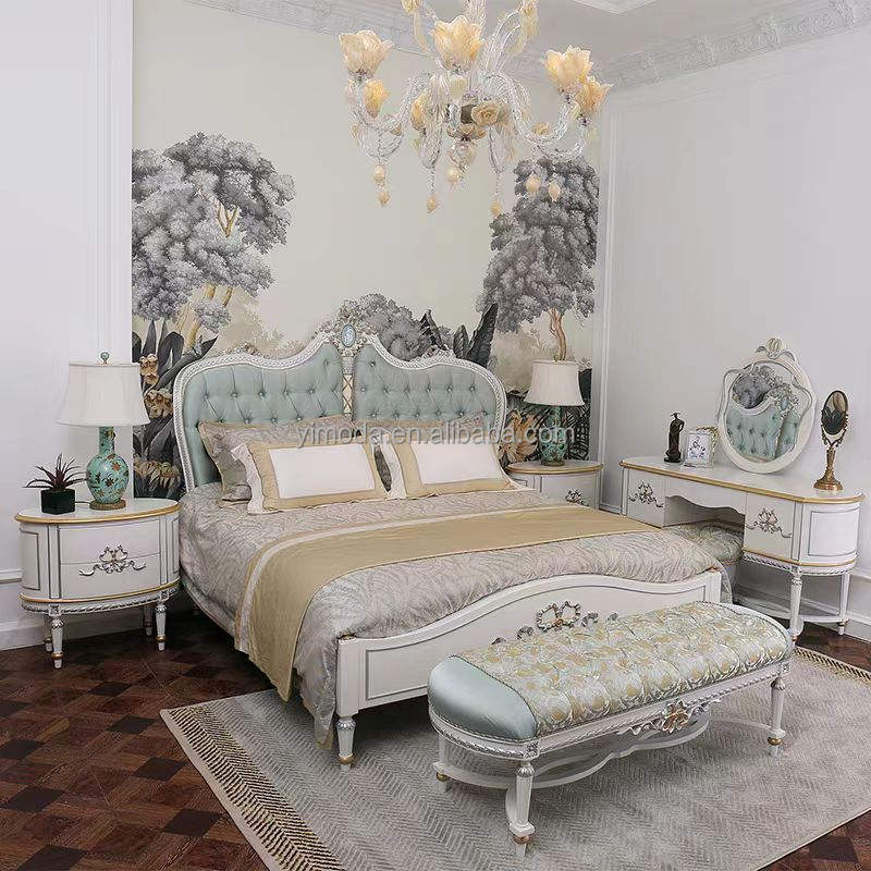 Lit de princesse bleu moderne palais romantique sculpté français pour chambre principale lit double lit de mariage chambre à coucher villa