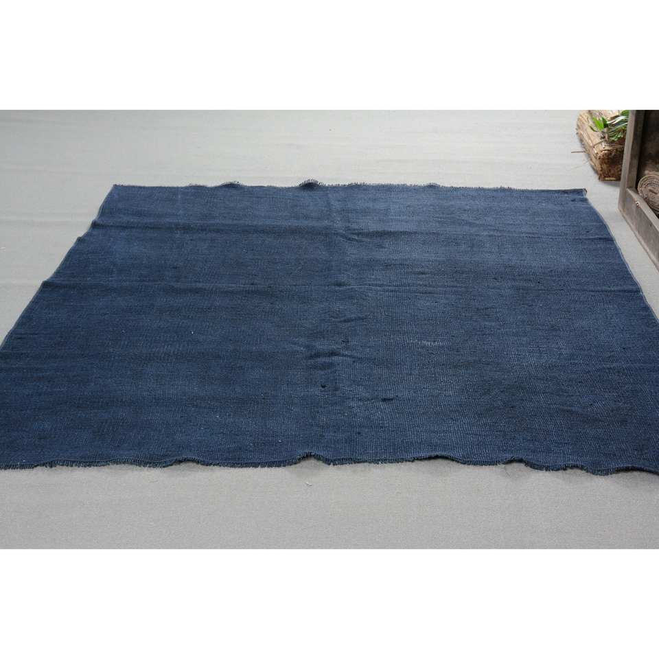 Tapis Turc Vintage Bleu Moderne 5.3X8.1 pieds Laine Peluche Pile Hauteur Latex Support Rectangulaire Patchwork pour Salon Voiture Couloir