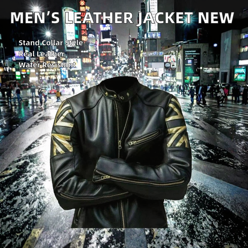 Veste en cuir pour homme avec logo de marque moderne, col montant, couleur unie, décontractée, imperméable, respirante, état neuf, fiable