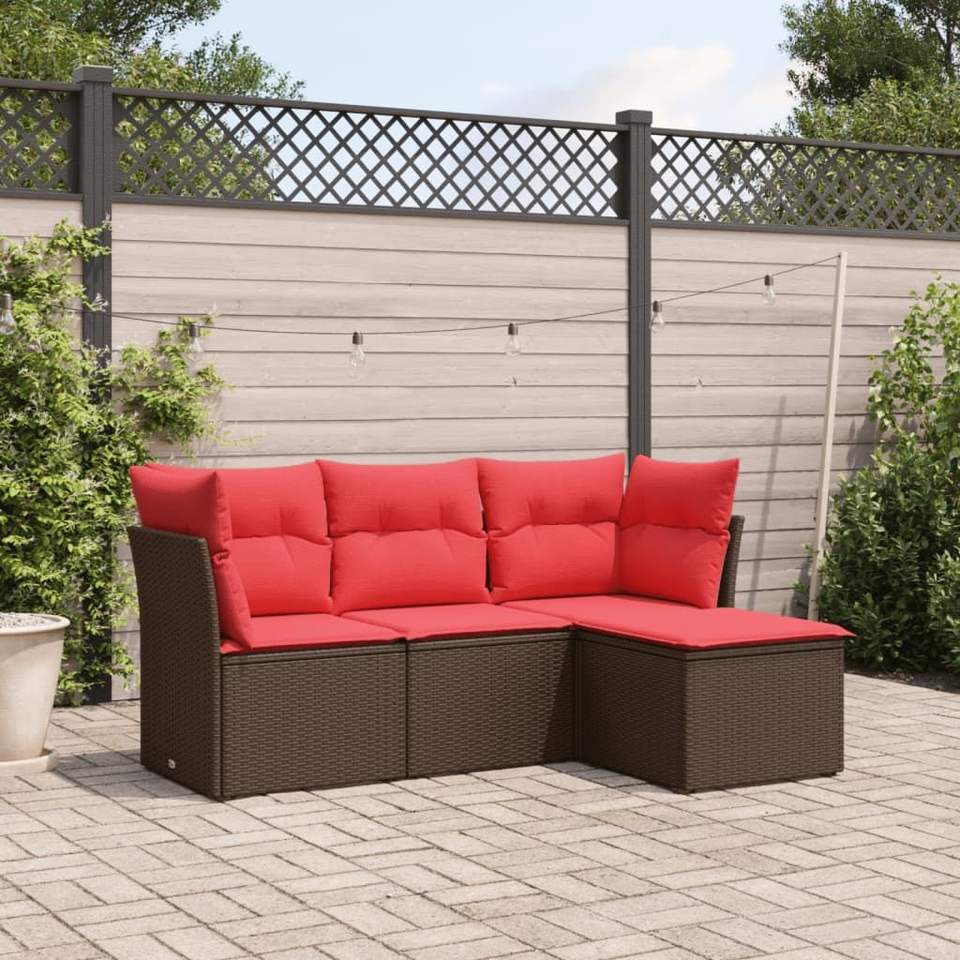 Modern Brown Poly Rattan Patio Sofa Set With Cushions Seats 4 People Outdoor Furniture Contemporary Design