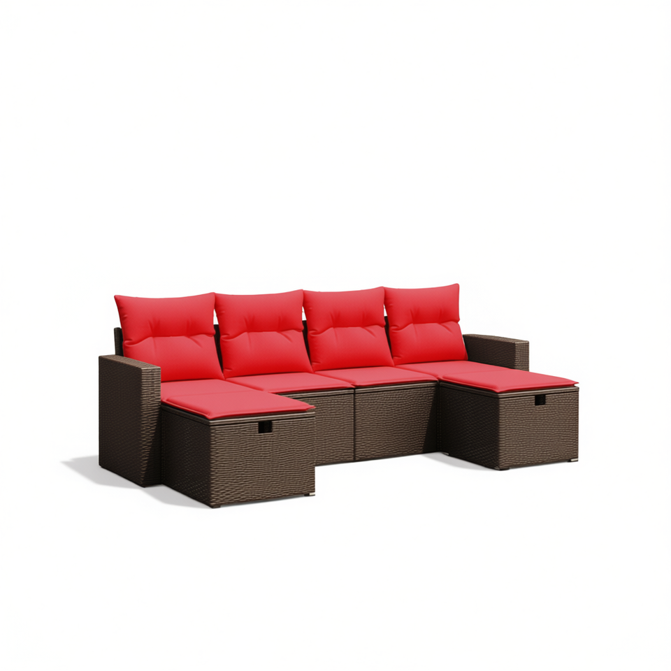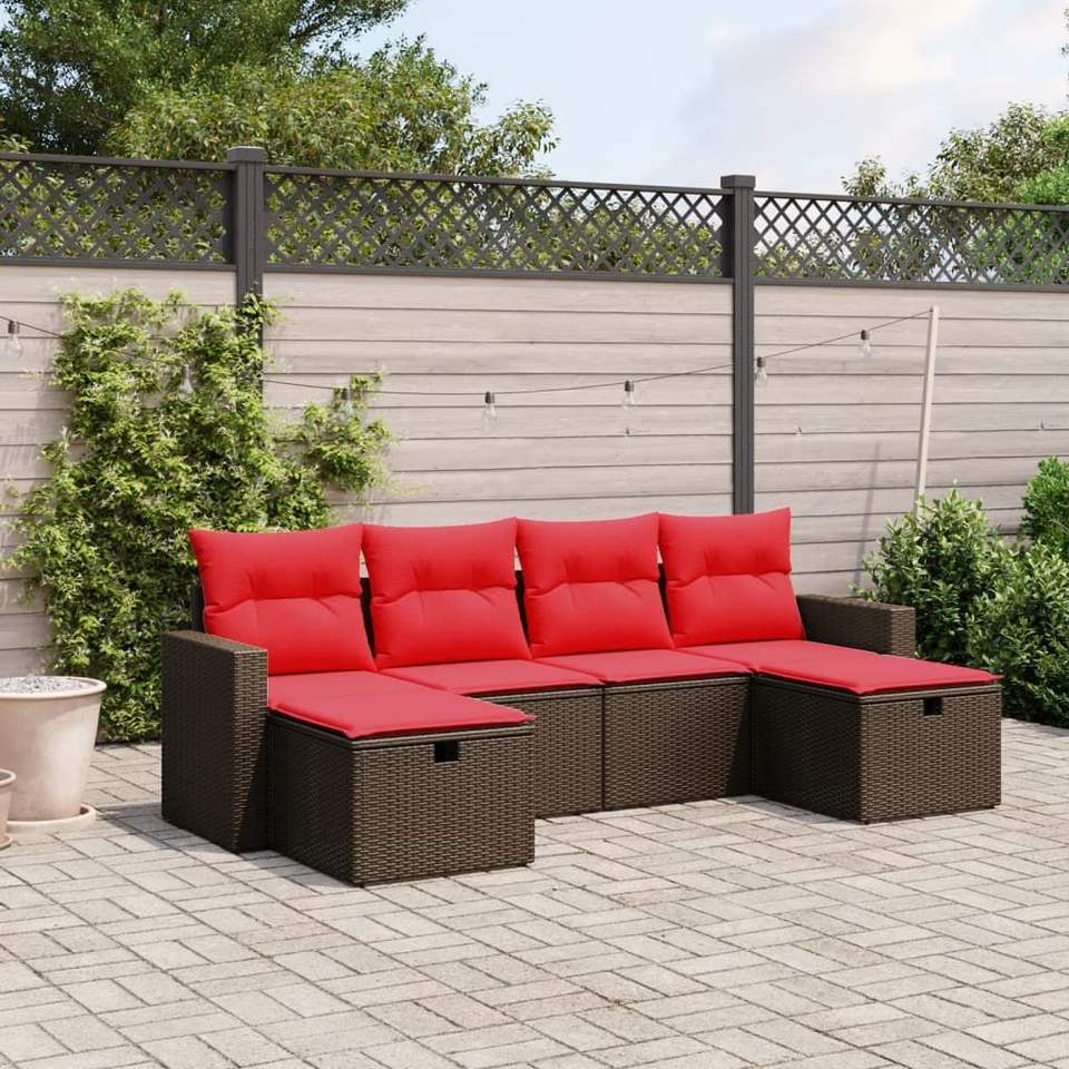 Ensemble de canapés de patio en polyrotin brun moderne, 6 places, meubles d'extérieur durables au design contemporain