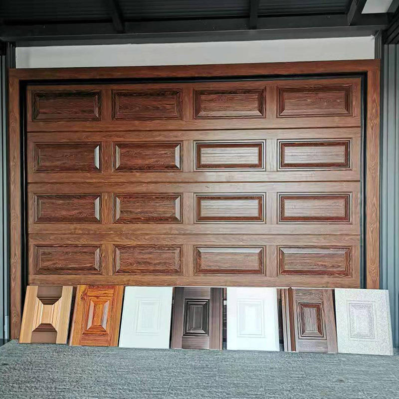 Grande porte de garage sectionnelle motorisée en acier à levage automatique à grain de bois brun moderne pour projets d'appartements