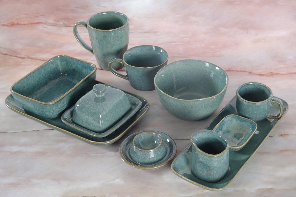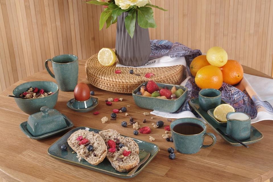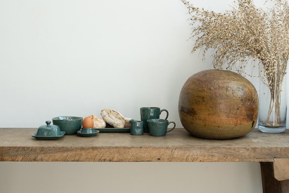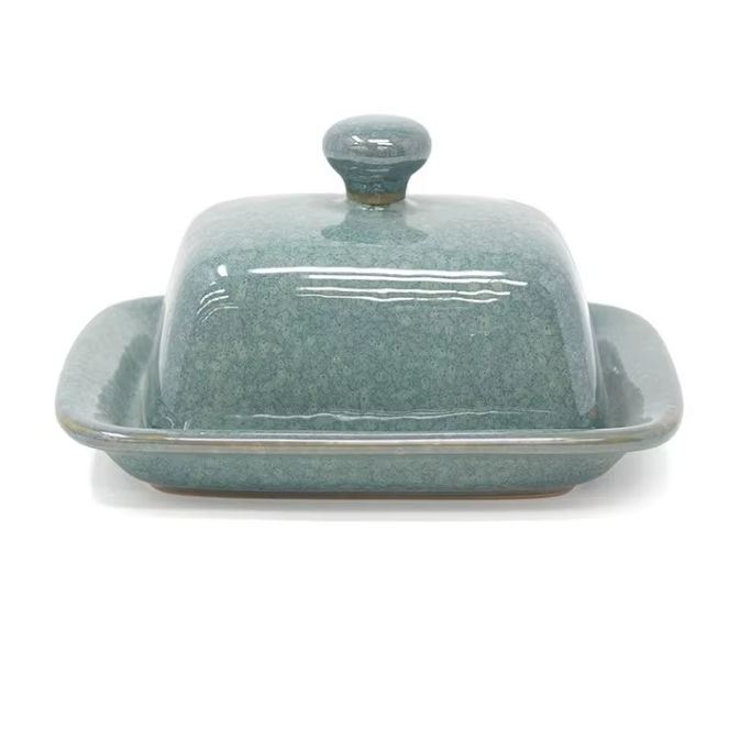 Pot à beurre moderne avec couvercle en glaçure réactive brillante, design plateau profond, élégant support de service pour la cuisine
