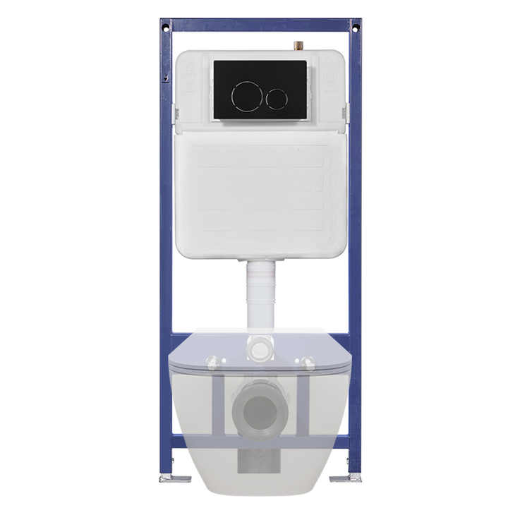 Réservoir de chasse d'eau moderne installé dans le mur avec finition chromée, bouton poussoir muet, encastré, pour salle de bain