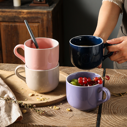 Mug à café en porcelaine grande capacité, motif dessin animé moderne, couleur personnalisable, sans danger pour les aliments, compatible micro-ondes/lave-vaisselle, réutilisable, idéal pour les entreprises