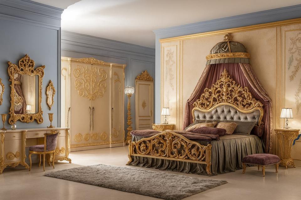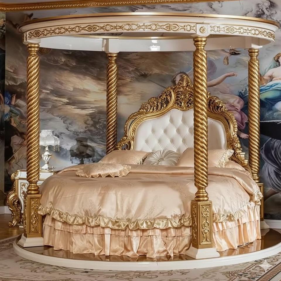 Modern Traditional Carved White Luxury Handcrafted Teak Wood Foldable Customizable Color Bedroom Set Bed Frame
