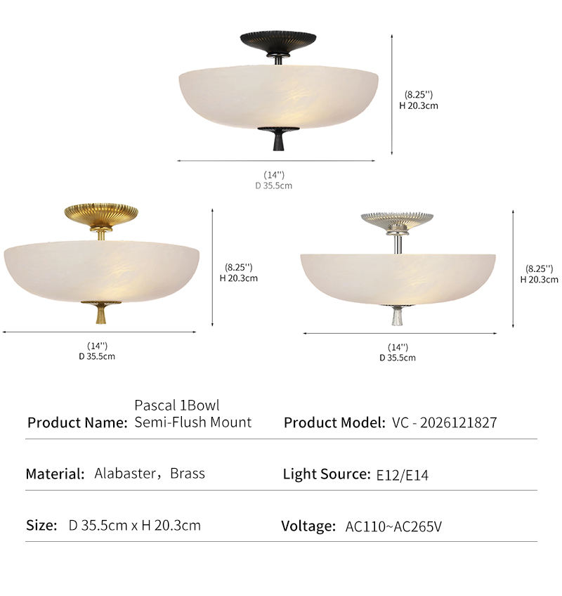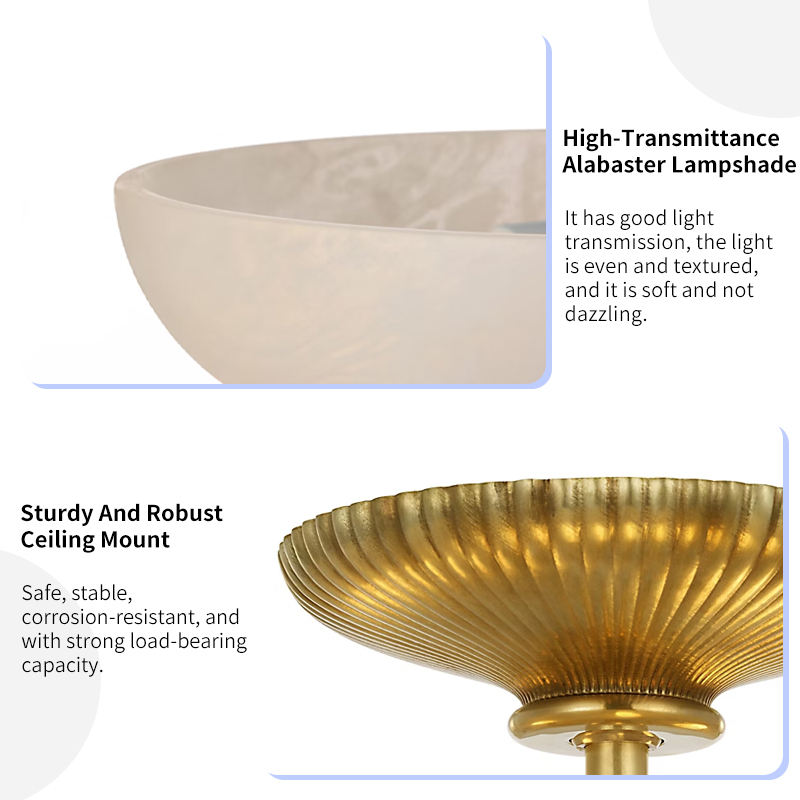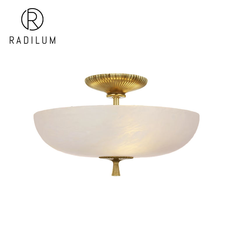 Plafonnier moderne de luxe pour hôtel, projet de villa, hall d'entrée, en albâtre naturel et laiton, LED, certifié UL CE SAA, modèle Pascal Bowl semi-encastré