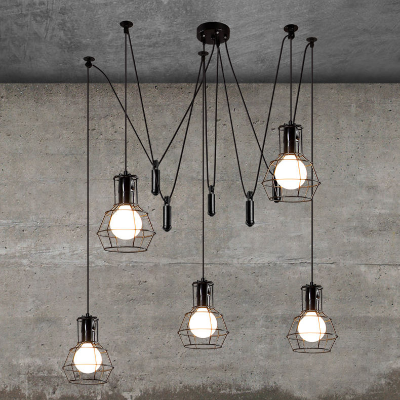 Plafonnier Moderne Loft Simple Villa Suspension Rétro Grande Poulie En Fer Forgé Ascenseur Petites Cages Lustres Industriels Noirs