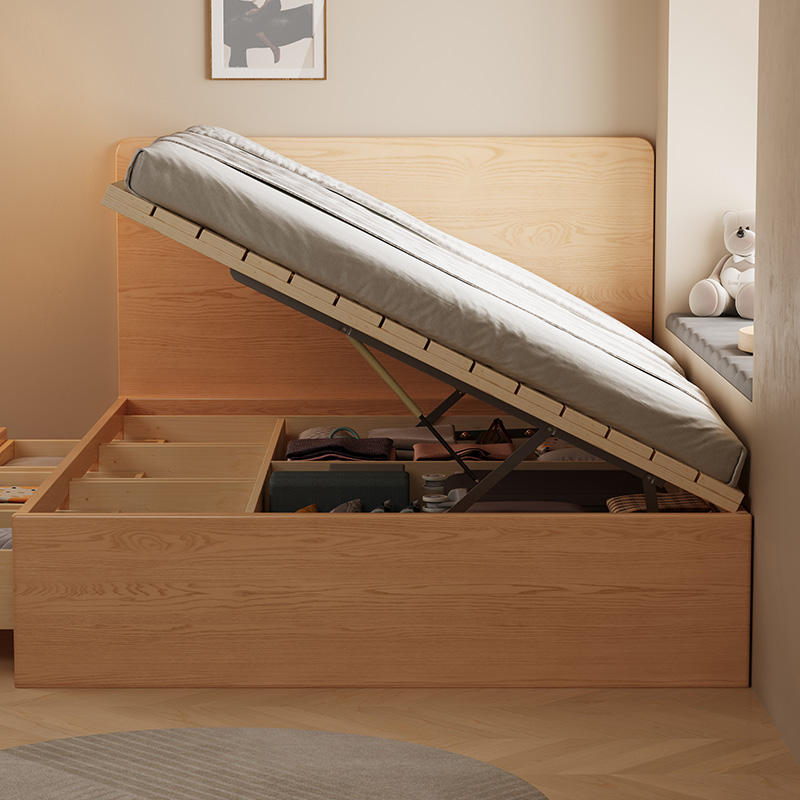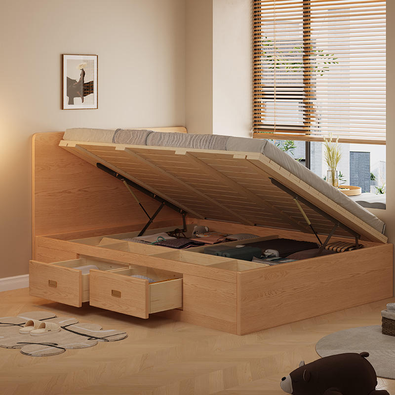 Cadre de lit Queen Size en bois massif de frêne au design minimaliste du siècle moderne Coffre de rangement à tiroirs jumeaux Chalet résidentiel Mobilier d'hôtel