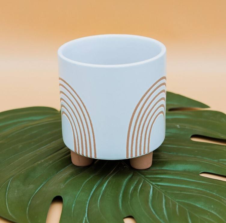 Pot de fleurs en céramique moderne avec pieds surélevés et design minimaliste arc-en-ciel, élégant support décoratif pour plantes d'intérieur