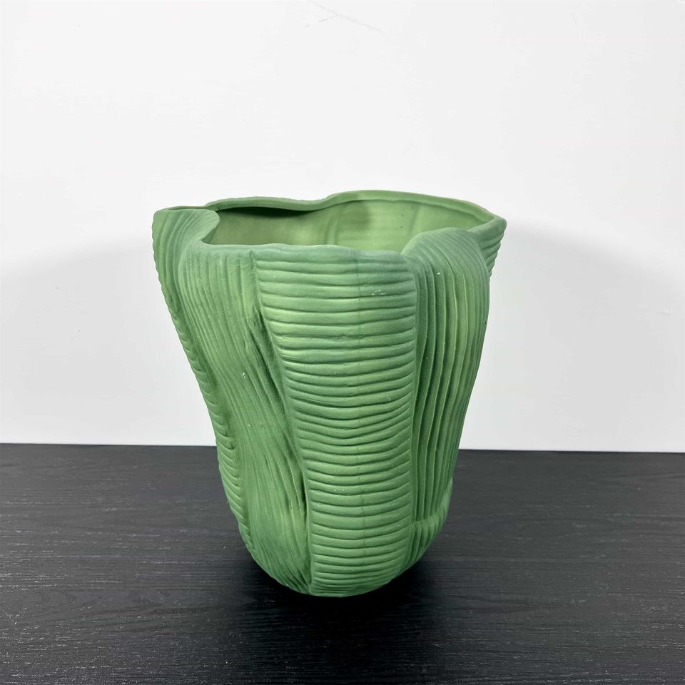 Ensemble de vases modernes en céramique et porcelaine, design floral vert irrégulier pour la décoration intérieure, vases mats et émaillés pour utilisation en pot de patio