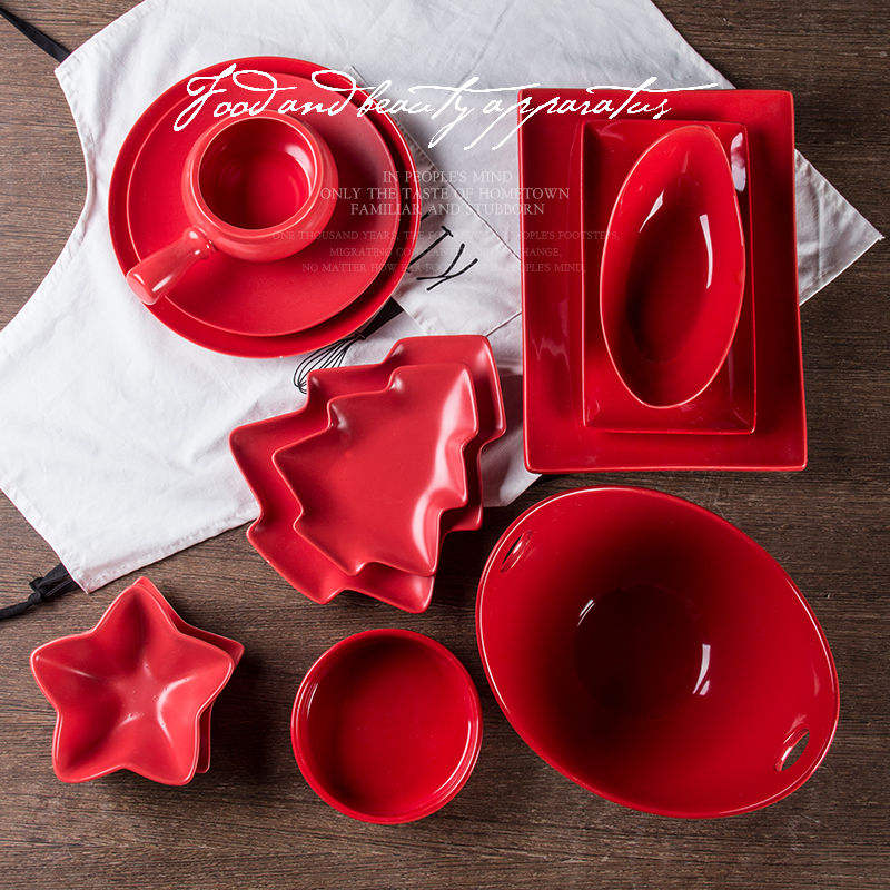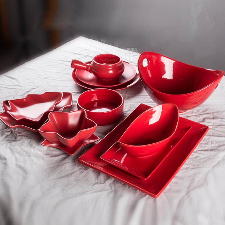 Modern Ceramic Red Glazed Dinnerware Set Dishwasher Safe Porcelain Tableware Stoneware Service for Hotels