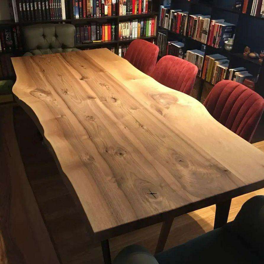 Table à manger moderne bon marché pour restaurant Amérique du Sud Noyer Forme naturelle Live Edge Table à manger en bois
