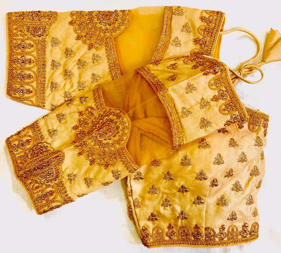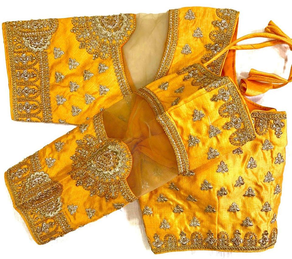 Modern Chennai Summer Style Silk Blouse Open Front Pattern Beautiful Orangenza Cut Sleeve Thread Coding Heavy Handwork Formal
