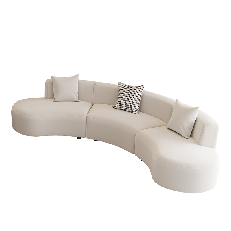 Canapé lune de style crème chinois moderne, ensemble sectionnel en tissu luxueux rembourré en forme d'arc pour petits appartements, hôtel, salon