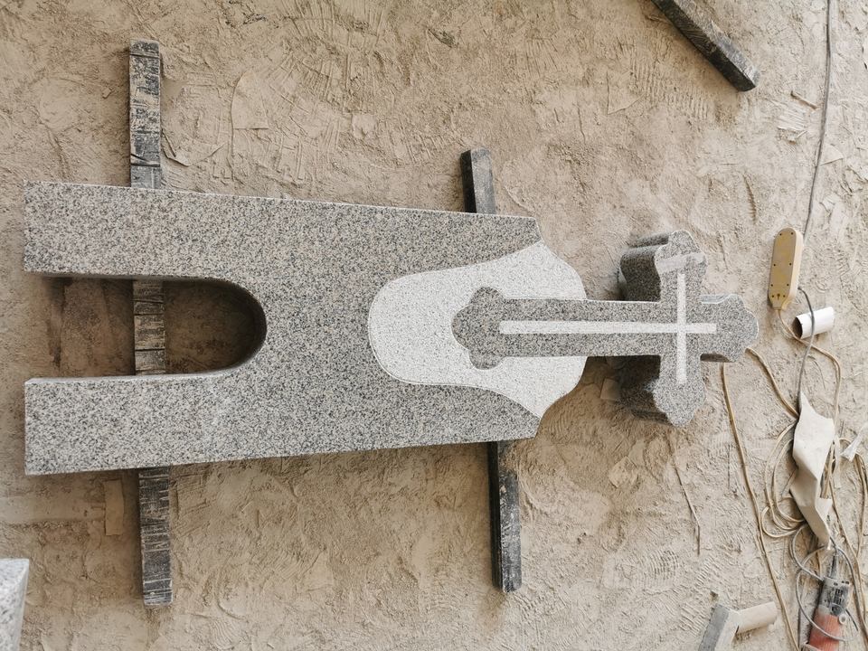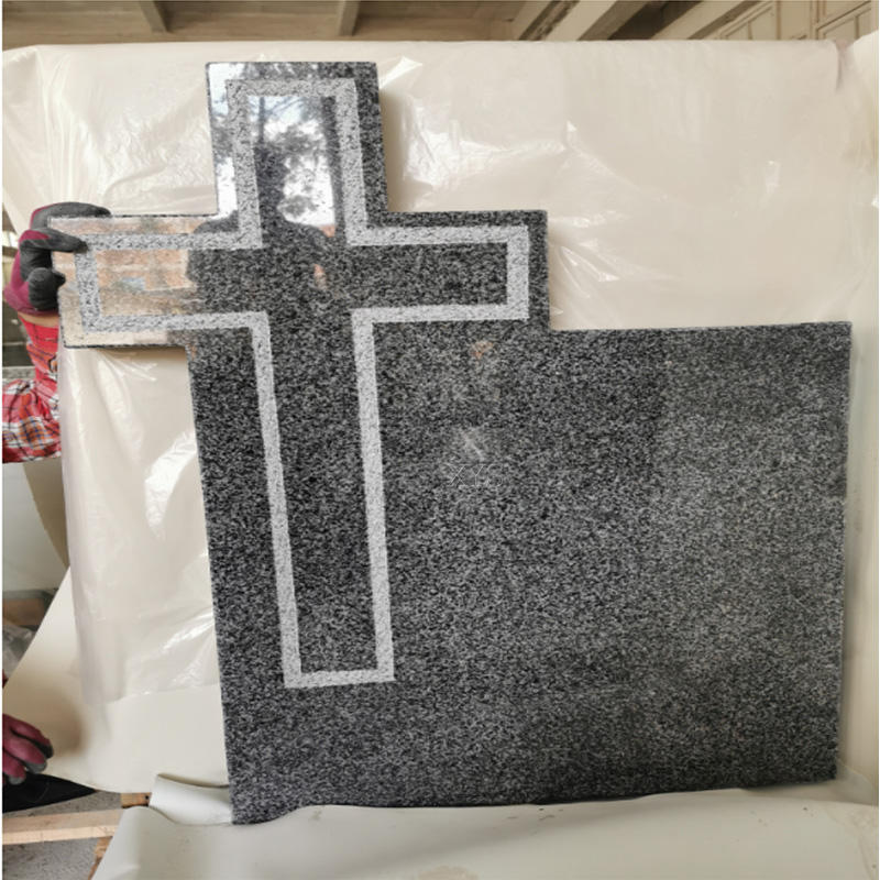Monument de pierre tombale en forme de croix de style chinois moderne avec blocs de granit gris clair pour une utilisation au cimetière