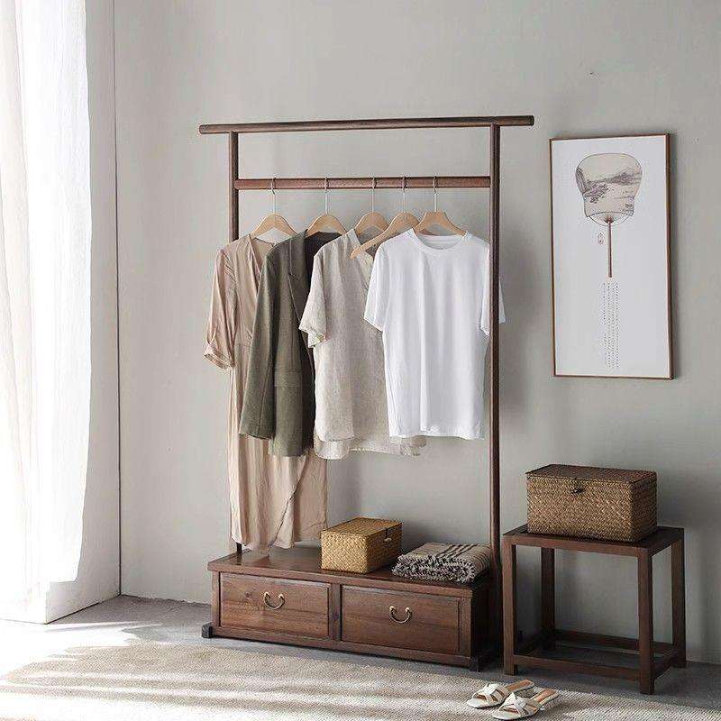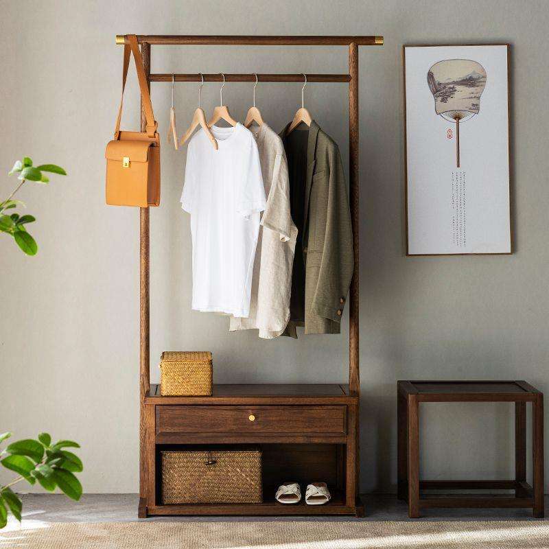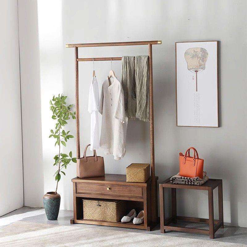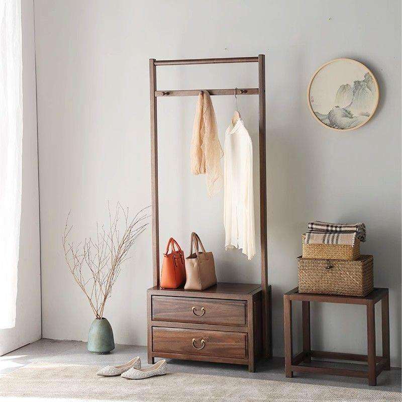 Porte-manteau pliable de style chinois moderne en bois de noyer, autoportant pour salon, chambre et usage domestique