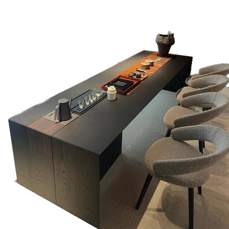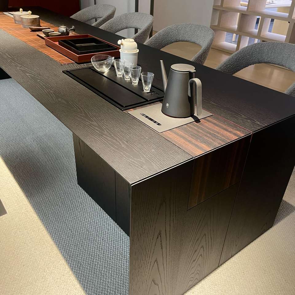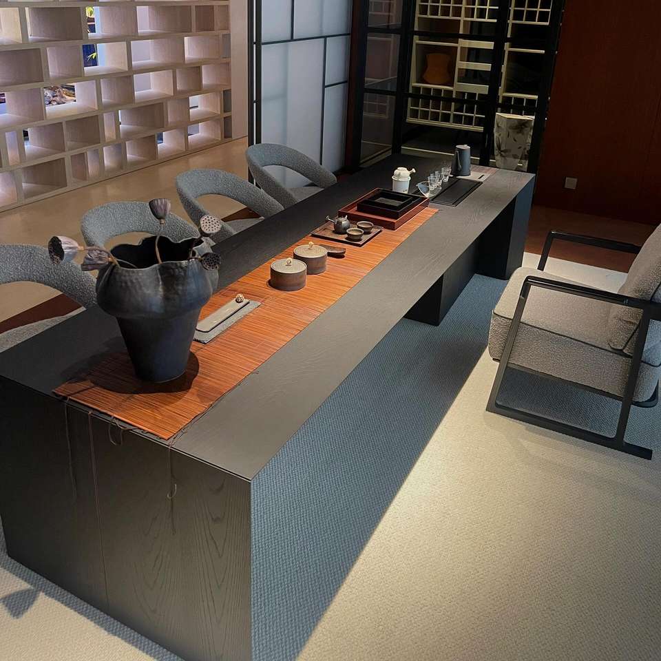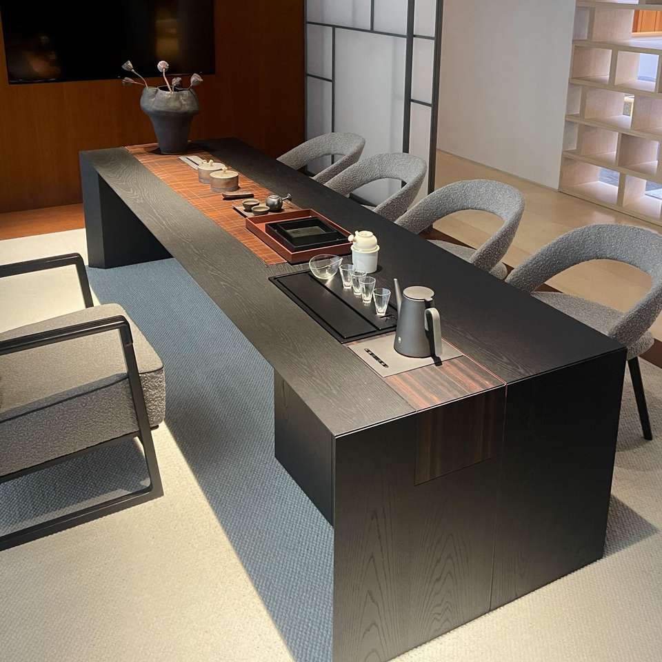 Table de conférence rectangulaire en bois massif de style chinois moderne avec support pour cuisinière à induction, durable, à jointure mortaise et tenon