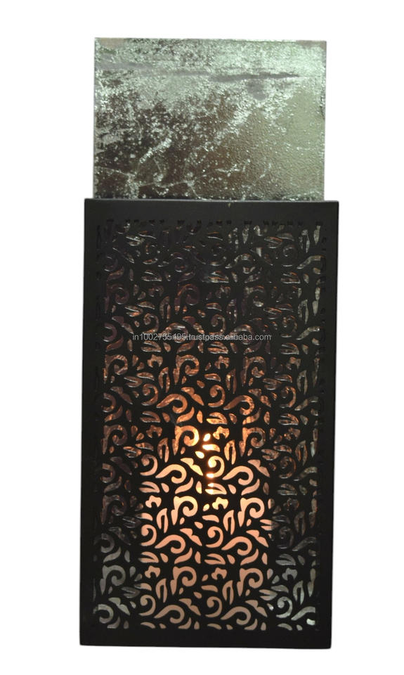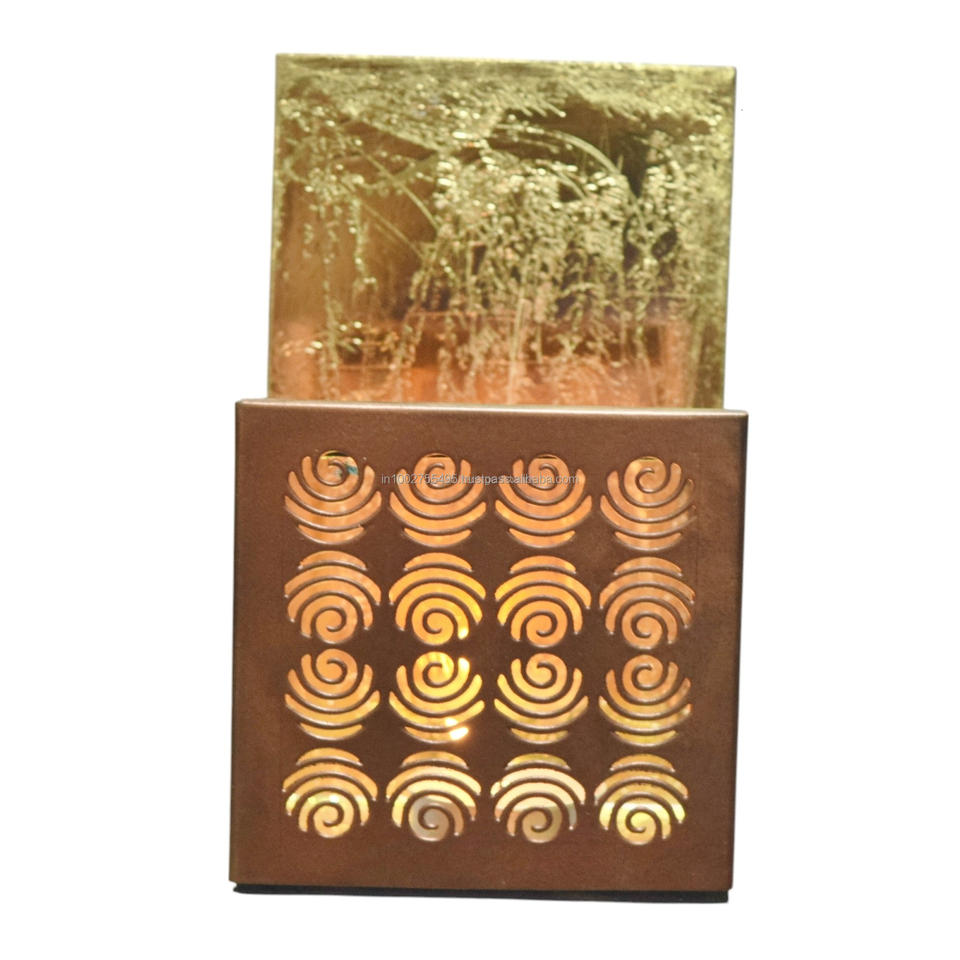Porte-bougie à thème de Noël moderne, doublure en feuille, petites lanternes, cuivre doré, argent, noir, métal, décoration artisanale pour la maison, fer
