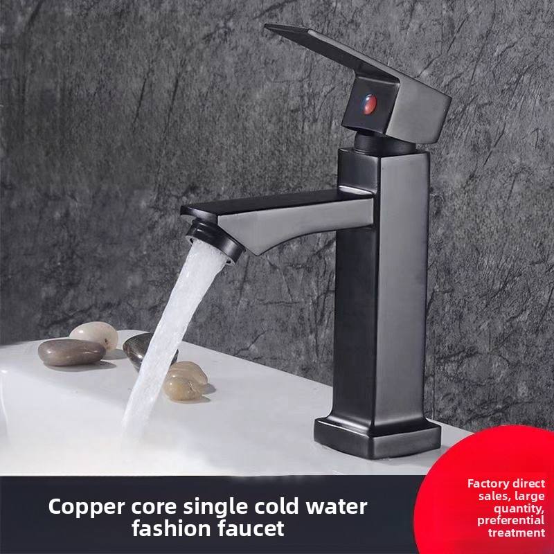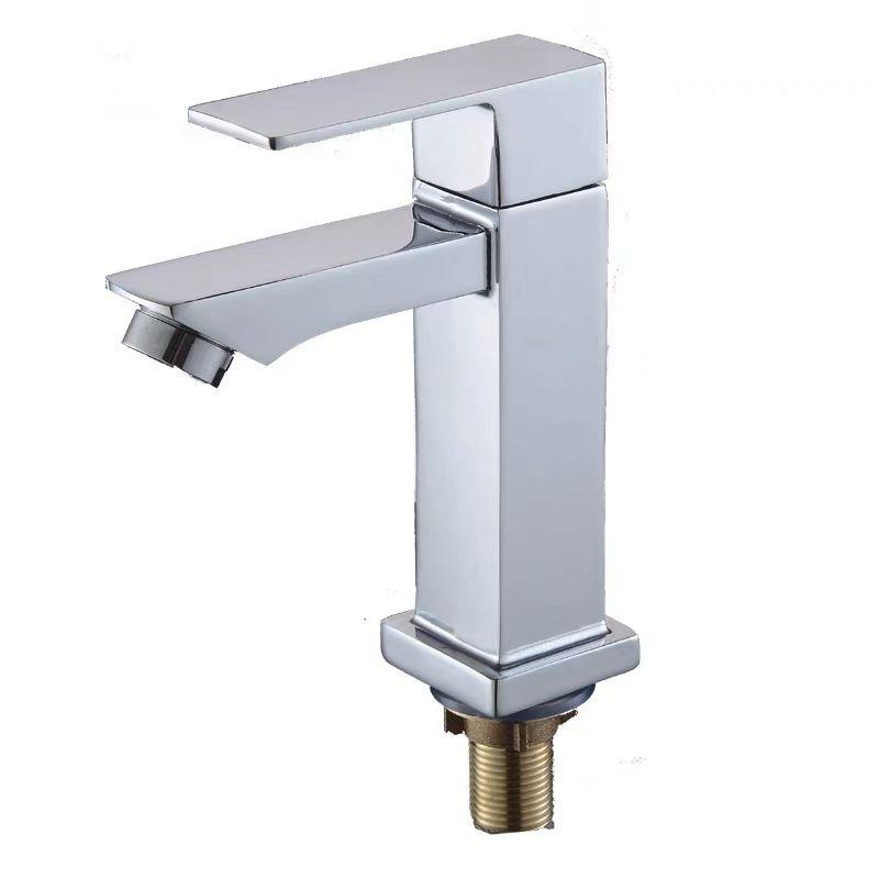 Robinet de lavabo moderne carré chromé à poignée unique pour eau froide, avec cartouche céramique, en zinc, à poser sur le comptoir, pour salle de bain domestique