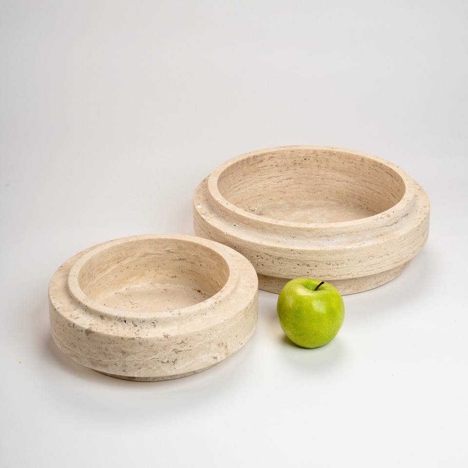 Bol de piédestal gigogne en travertin beige classique moderne en pierre naturelle pour la décoration intérieure de la villa, de l'hôtel et du salon.