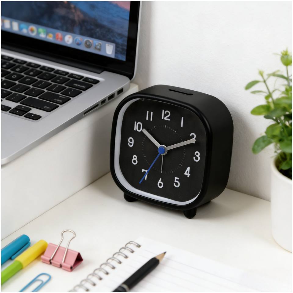 Réveil silencieux à quartz moderne classique noir de 3,5 pouces avec affichage à aiguilles et veilleuse pour chambre d'enfant