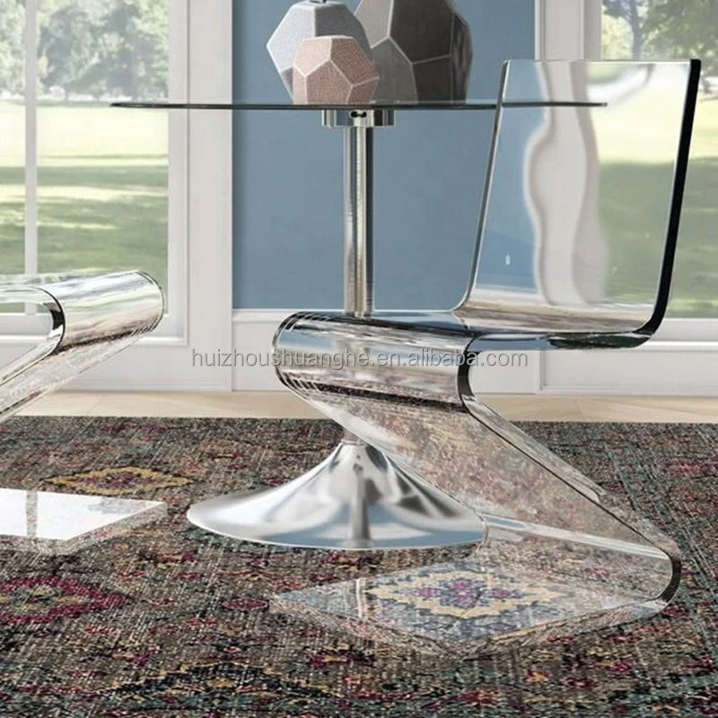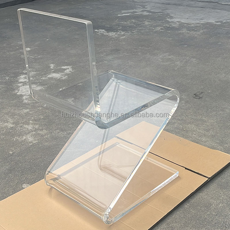 Chaise de salle à manger moderne transparente en forme de Z personnalisée usine de meubles de maison de bar d'hôtel-chaise acrylique en plexiglas de précision PMMA