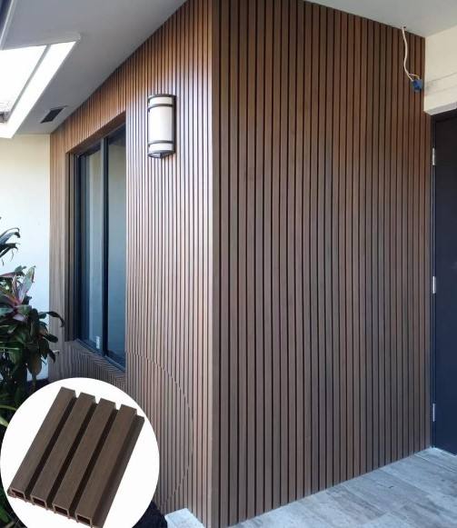 Panneau de revêtement mural en WPC co-extrudé moderne étanche à l'humidité et à l'eau pour une utilisation en extérieur pour hôtels écoles villas extérieurs