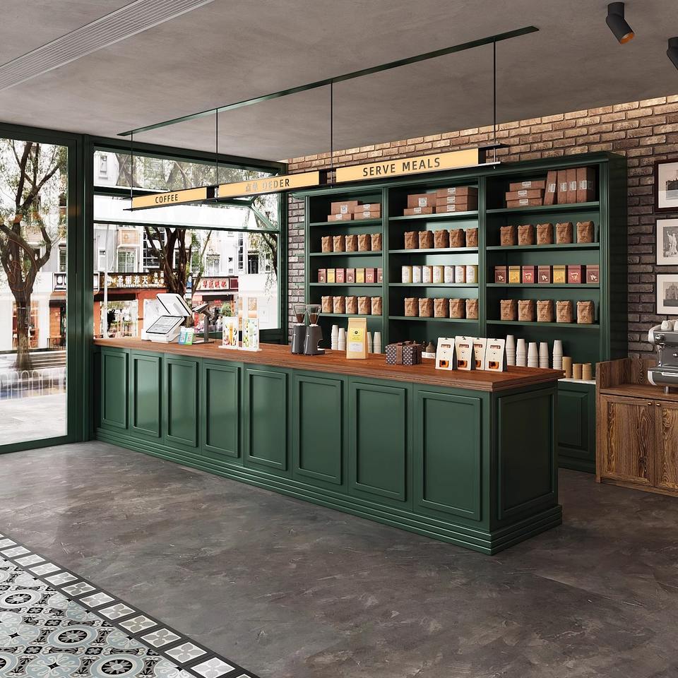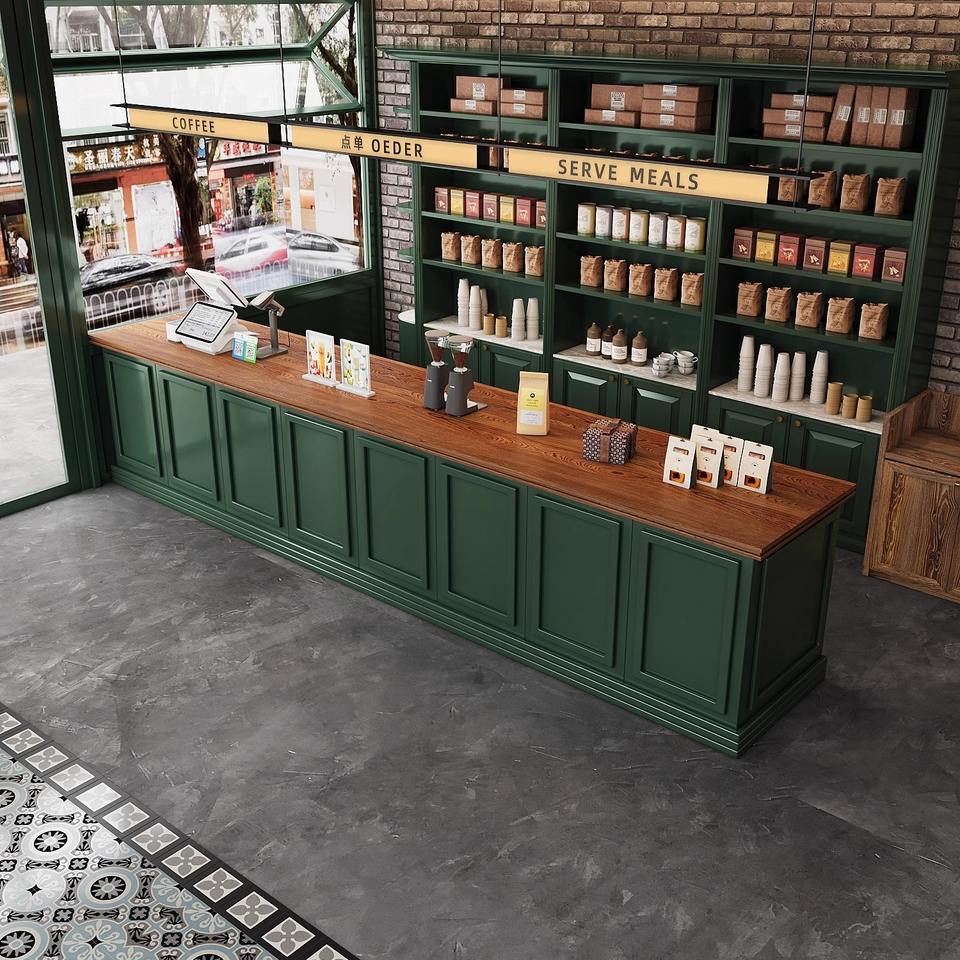 Café-bar moderne Restaurant occidental Réception Cuisson Maison de thé Caisse enregistreuse Comptoir de réception Coin armoire à vin Hôtel