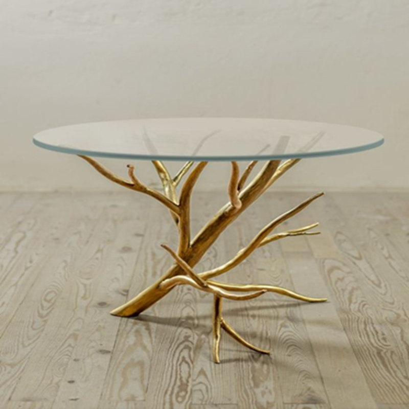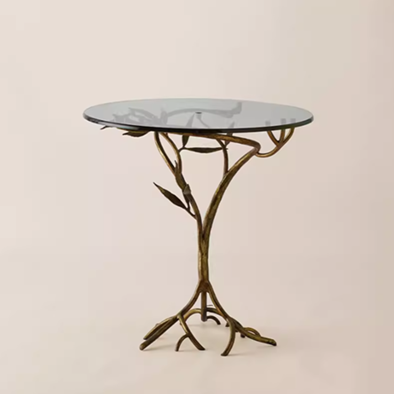 Ensemble de tables basses modernes avec plateau en aluminium, design à fixation au sol, meubles de salon