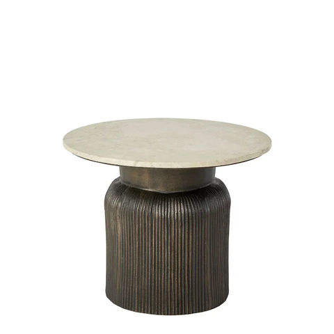 Table basse moderne avec base en métal martelé, finition laiton de haute qualité, plateau en marbre, décoration durable pour la maison et l'hôtel