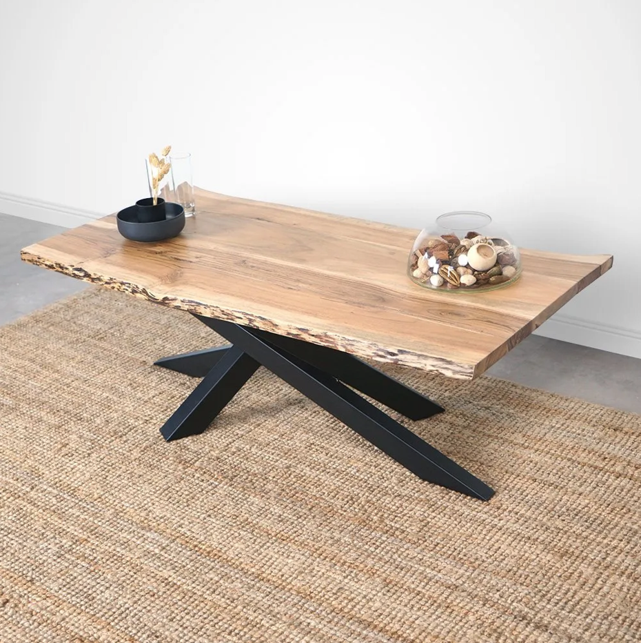 Table basse moderne avec plateau en bois massif et bords naturels-Mikado