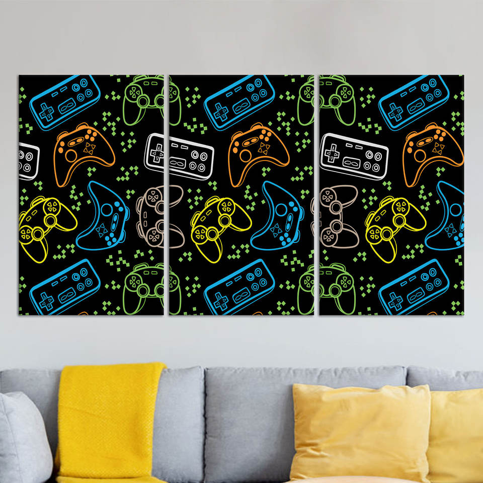 Décoration moderne et colorée pour console de jeux - Œuvre d'art imprimée sur toile pour salle de jeux, lot de 3 toiles