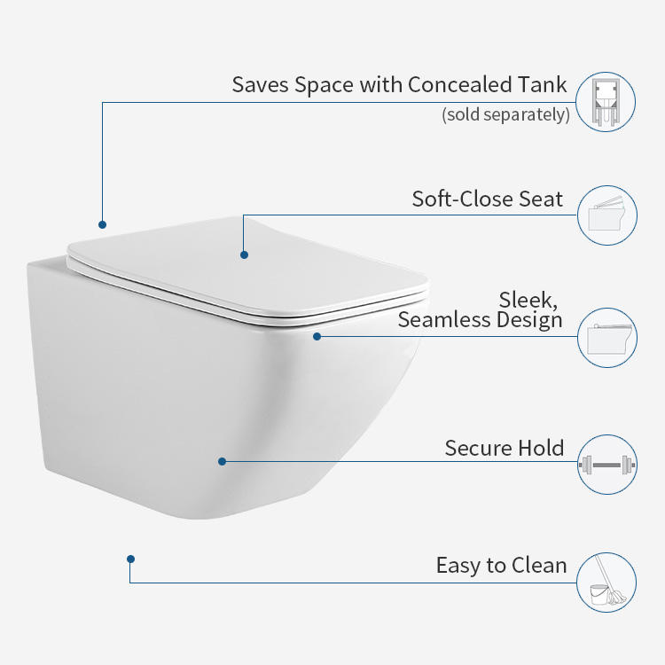 Suite de Toilettes Murales Contemporaines Modernes et Confortables à Hauteur Optimale, Chasse Double Économique, Céramique WC