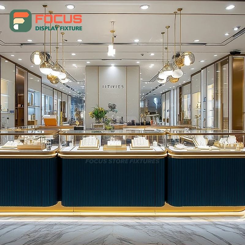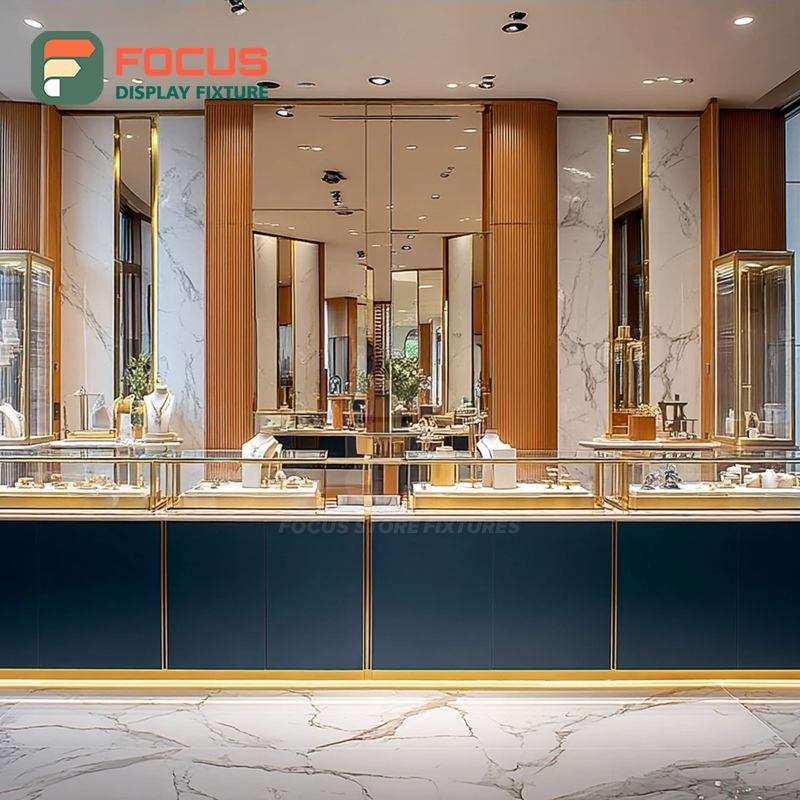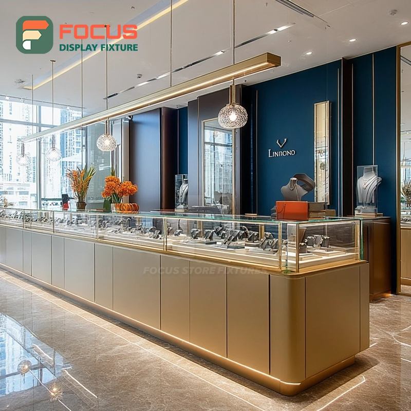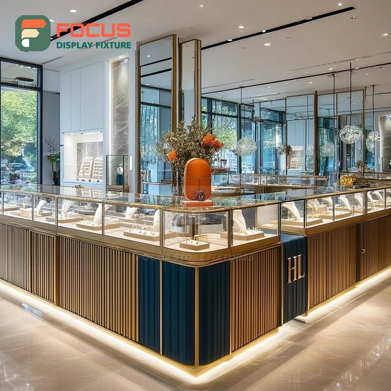 Comptoir de présentation de bijoux commercial moderne avec cadre en bois pour centre commercial, vitrine à bijoux