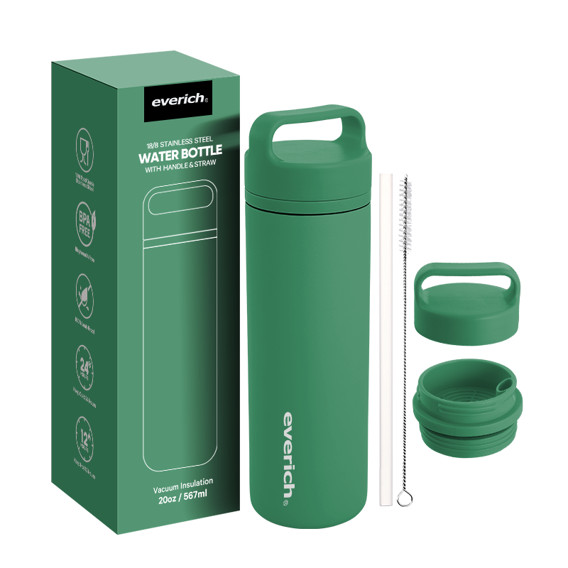 Bouteille Thermique en Acier Inoxydable à Double Paroi Isolante de 20 oz Sans BPA pour les Déplacements Modernes Longue Durée avec Poignée