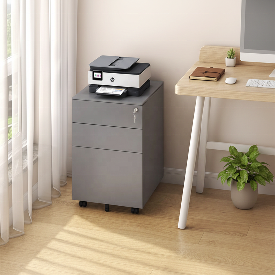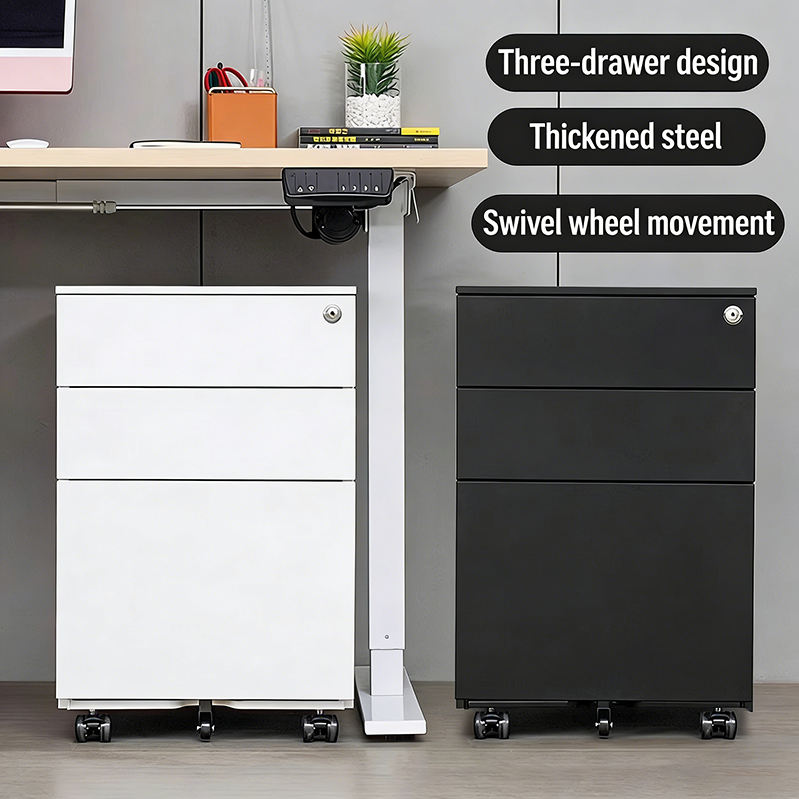 Armoire de classement mobile en acier moderne, compacte, à profil bas, écologique, à 3 tiroirs avec roulettes pour le rangement de bureau à domicile dans les petits espaces