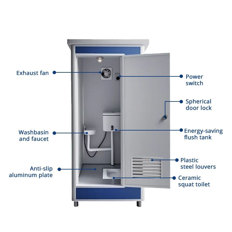 Cabine de douche et de toilettes portable extérieure compacte et moderne à installation rapide avec panneau sandwich pour utilisation en parc
