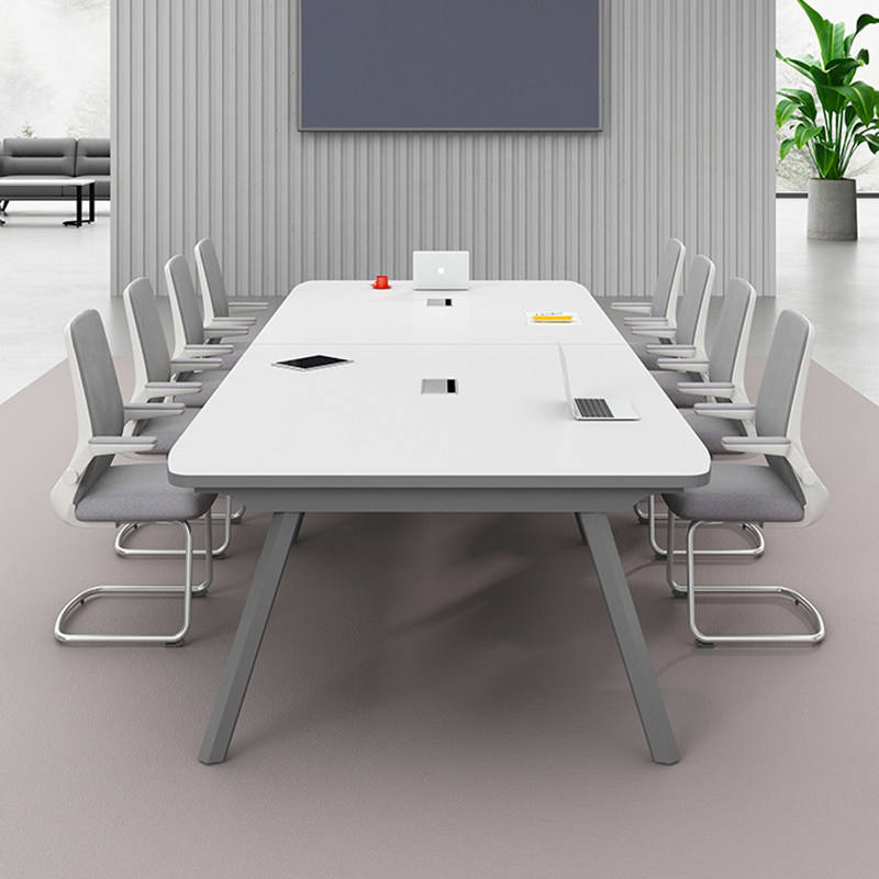 Table de conférence moderne rectangulaire blanche, bureau stable pour salle de réunion