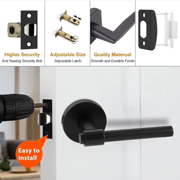 Poignée de porte moderne et contemporaine, design carré et fin, avec système de déverrouillage automatique, pour les portes de la maison, de la chambre à coucher, de la salle de bain, du couloir