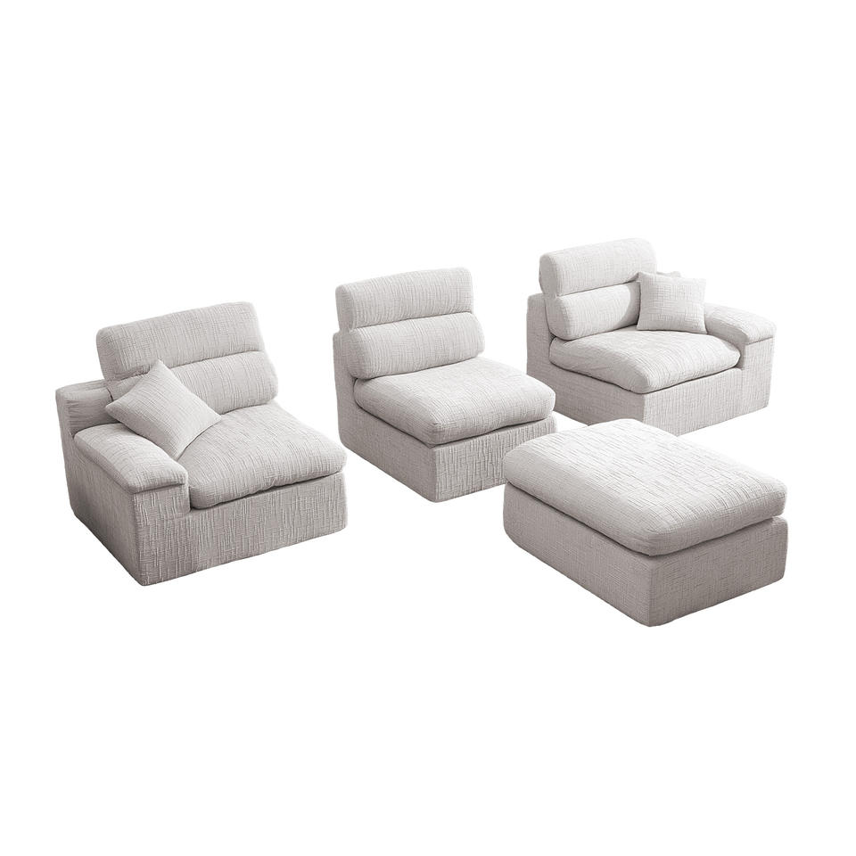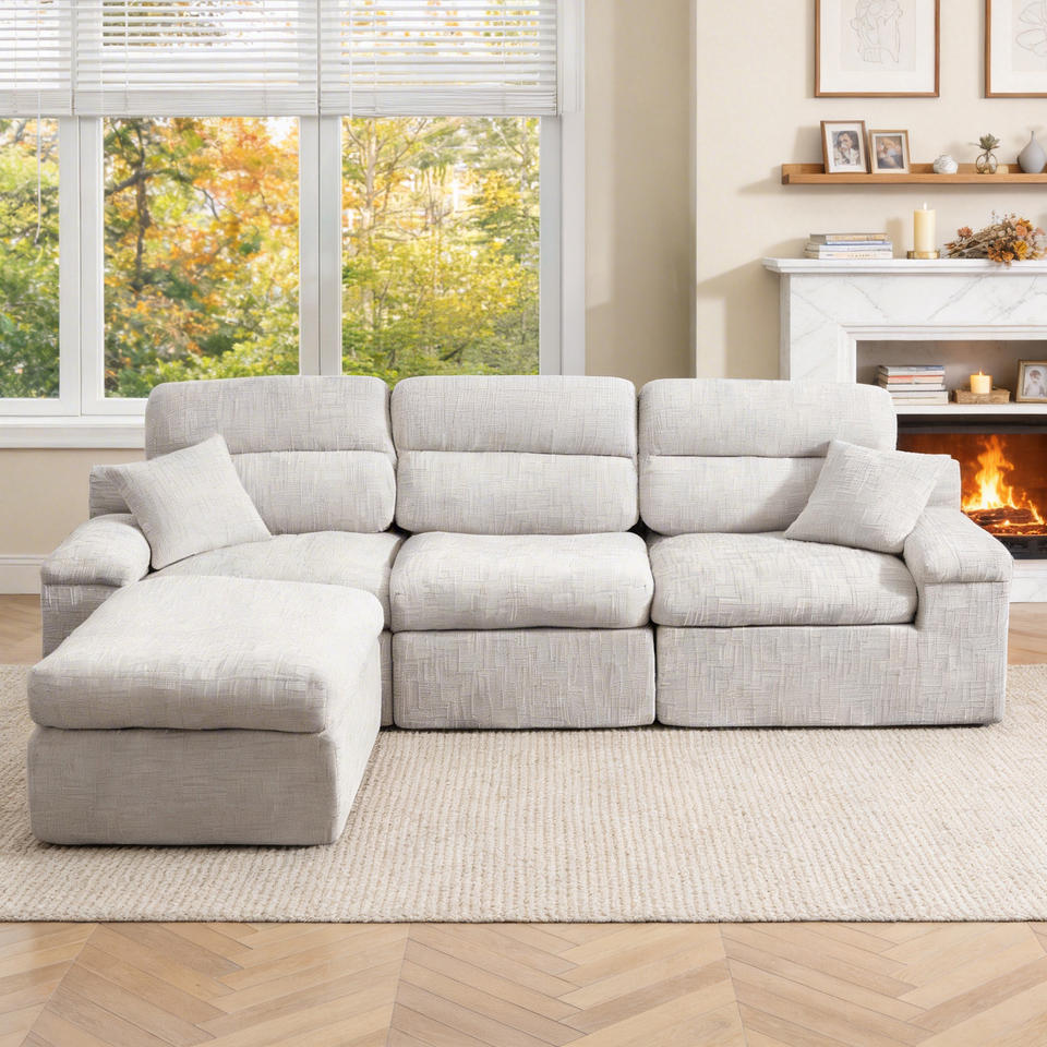 Ensemble de canapés d'angle convertible moderne avec dossier haut, design en L, tissu chenille bouclé, mousse haute densité compressée, pour hôtel