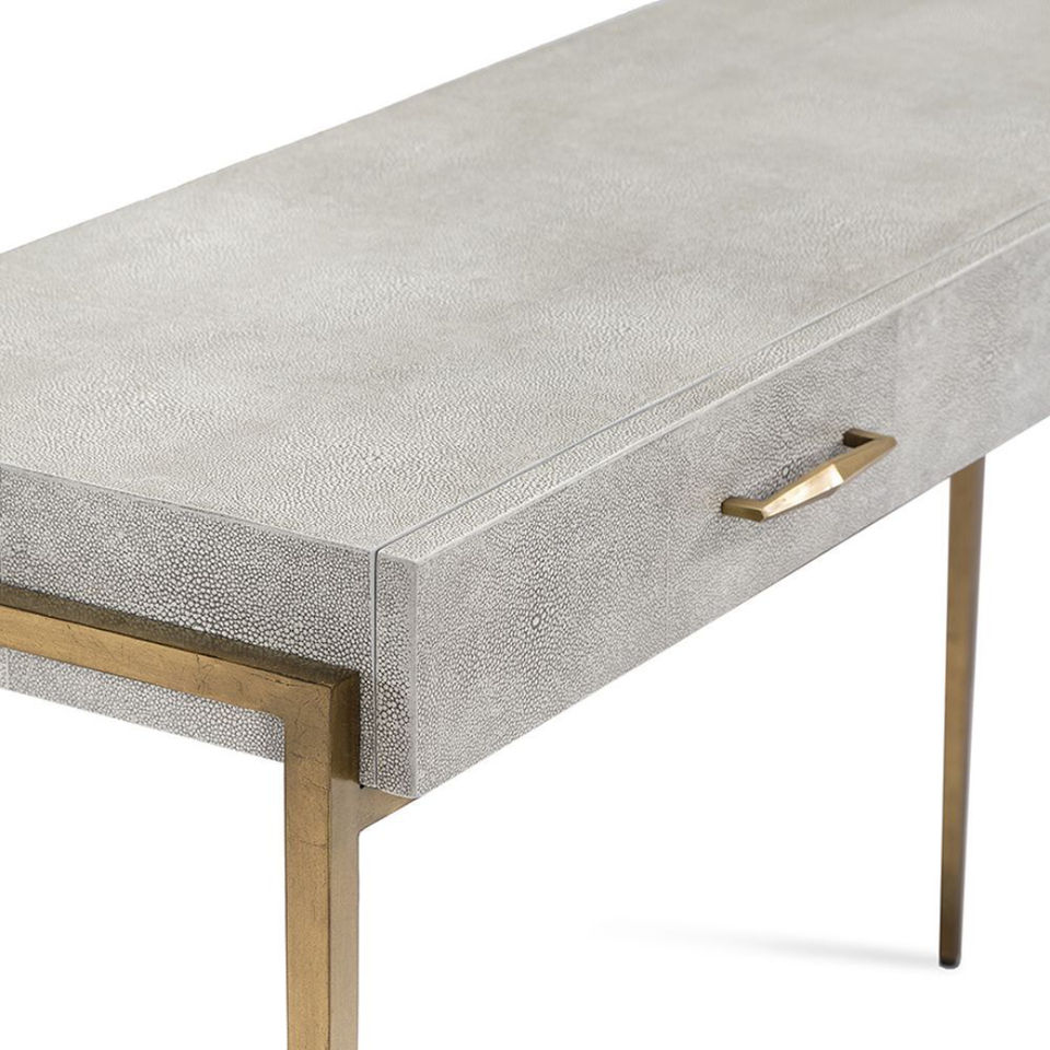 Table console moderne convertible et extensible à 3 tiroirs en faux shagreen, personnalisable et colorée, pour chambre, salon, entrepôt, salle à manger, avec base de pieds